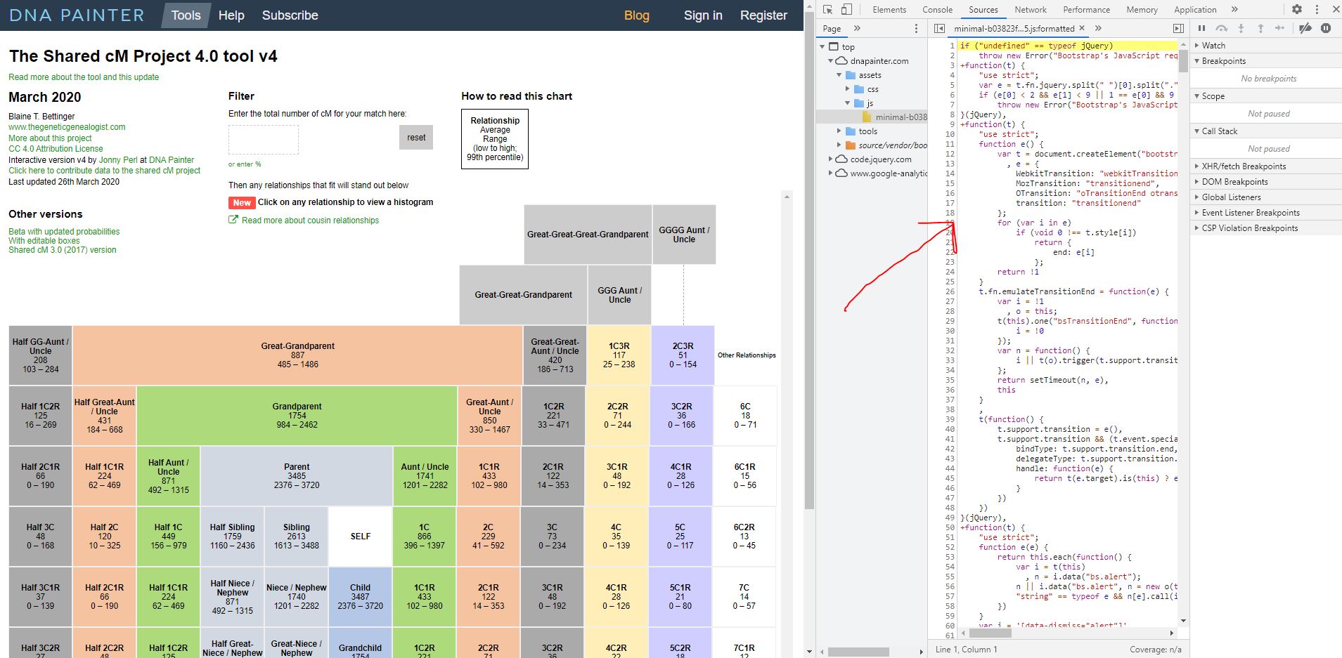 Building the functionality required some interesting research. I ended up peeking behind the curtains of the DNA website noted above. Fortunately, the JavaScript that the website uses for its functionality was available for reverse engineering (often JavaScript is intentionally obfuscated/garbled to make it hard to understand). This exercise required a modest understanding of JavaScript, which I had to learn. Thank you YouTube. (You’d think JavaScript would be a lot like Java, but their similarities are pretty limited as they have each evolved to tackle different types of problems.)