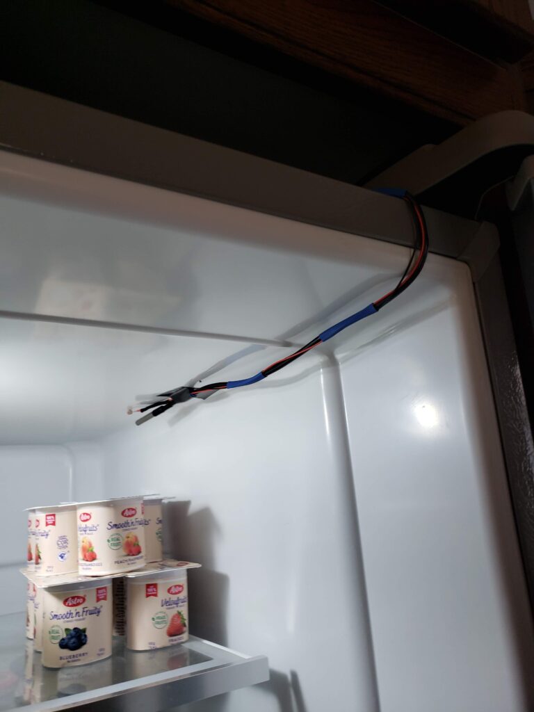 Alarm if the fridge compartment rises above an adjustable temperature, this time playing “Hot Blooded”.