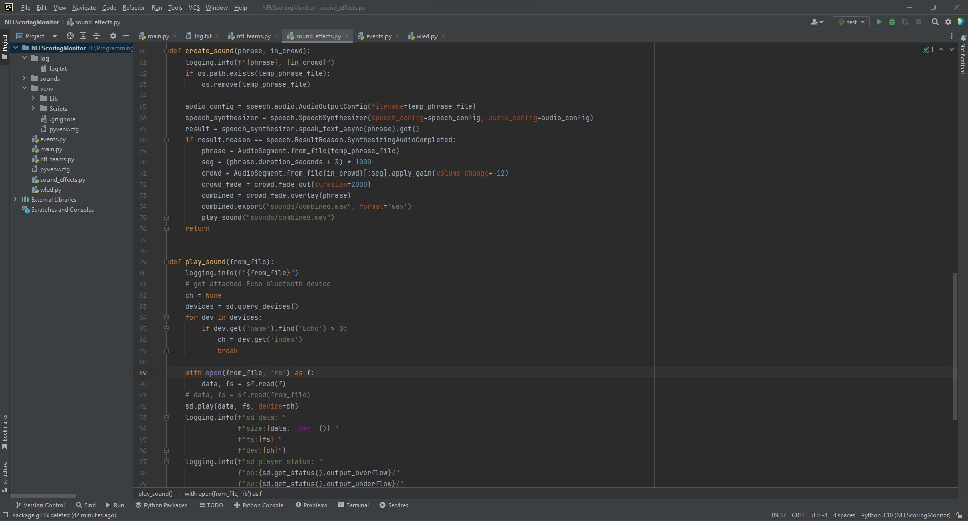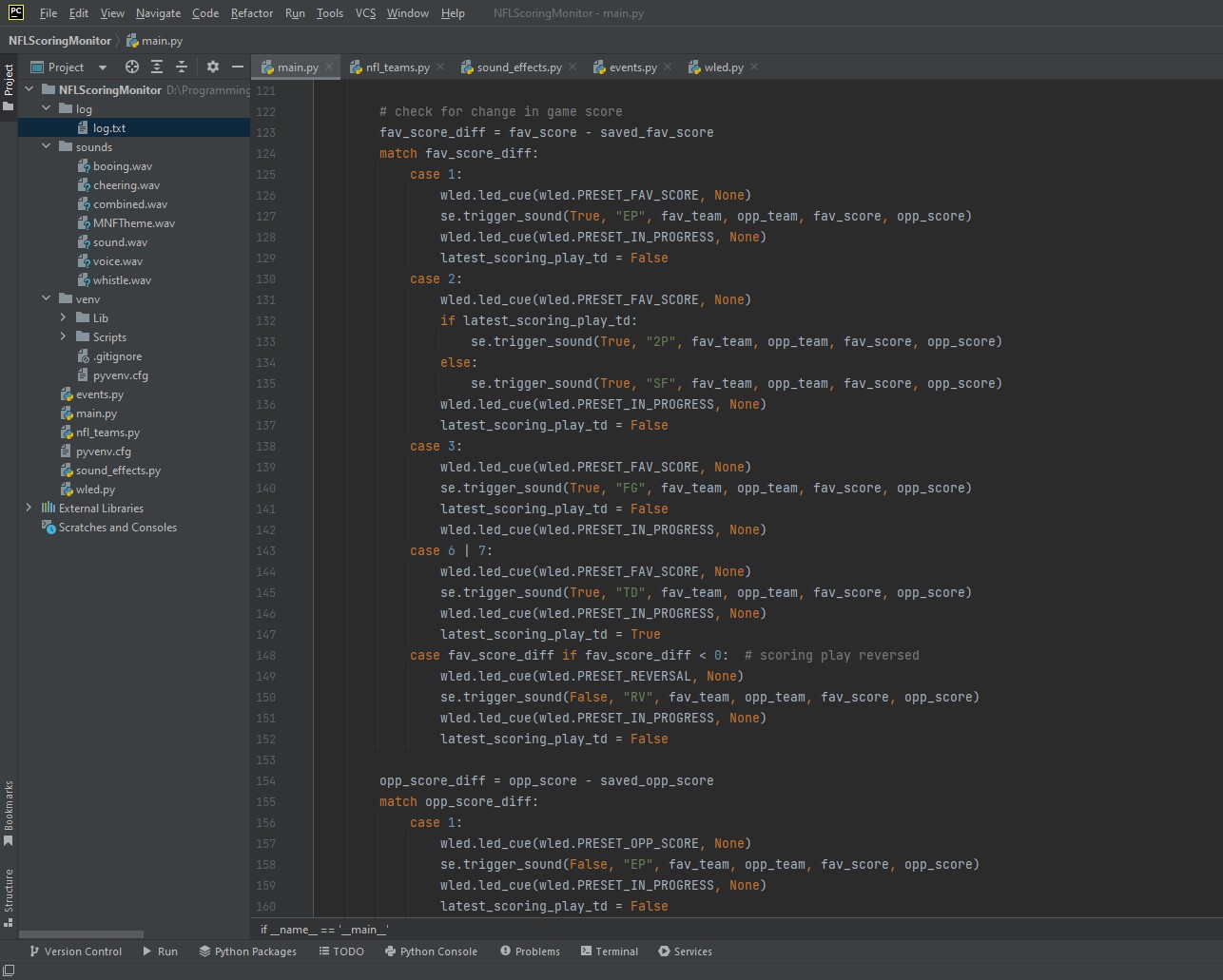 Like the NHL version, this project is inspired by the devices you can get that alert you when your favourite team does something good, taking advantage of an exposed ESPN API end point from which near-real-time game status can be freely drawn.
