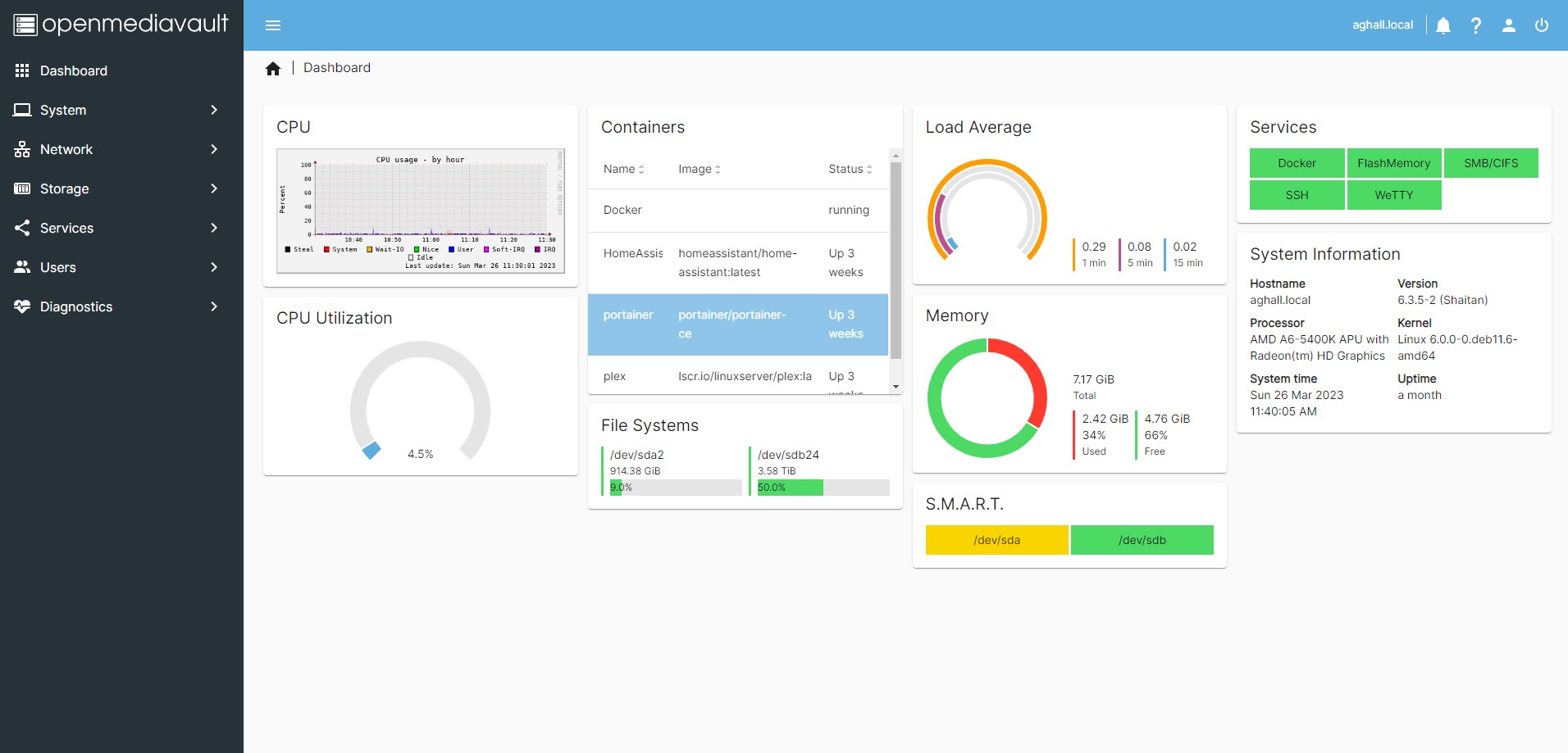 I also had an old desktop PC kicking around, and the ensuing research I did led me to Open Media Vault Server (OMV). It’s Open Source and free and fit well with my objectives.