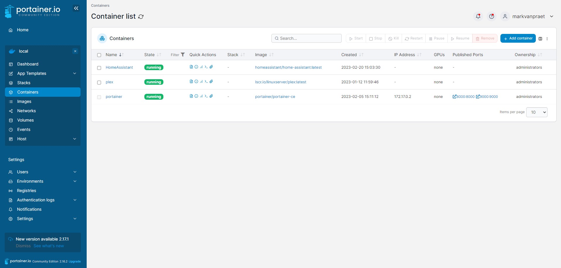 *Docker/Portainer | Docker takes a slice of the server and simulates being its own little virtual system. It’s what enables Plex and Home Assistant. Portainer is a Docker application that manages Docker apps |